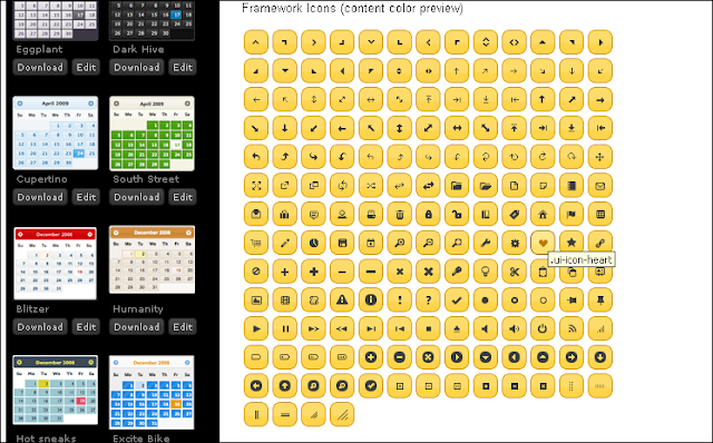 Now the question is that how do you remember these icons class name? And for your information, the jQuery UI theme provides more than 150+ icons which I can't list here and it is difficult to remember.The way to figure out the name of the icon is to visit jQuery UI ThemeRollar. And you can find the all of the icons listed in a grid at bottom of the page. Take your mouse on the icon to see the class name.