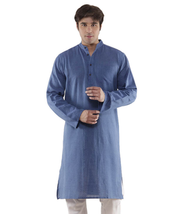 Brand : E-rato Colour : Blue Fabric : Cotton Design : Pattern Product Type : Long Kurta Mandarin collar Full sleeves Wash care : Mild wash, Wash similar colors together Product code : NE006-blue Disclaimer : Product colour may slightly vary due to photographic lighting sources or your monitor settings